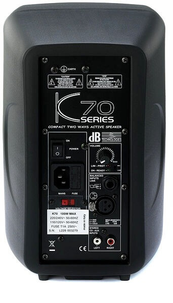 La caja acústica K70 está equipada con un woofer de 5" y un tweeter de cúpula.
